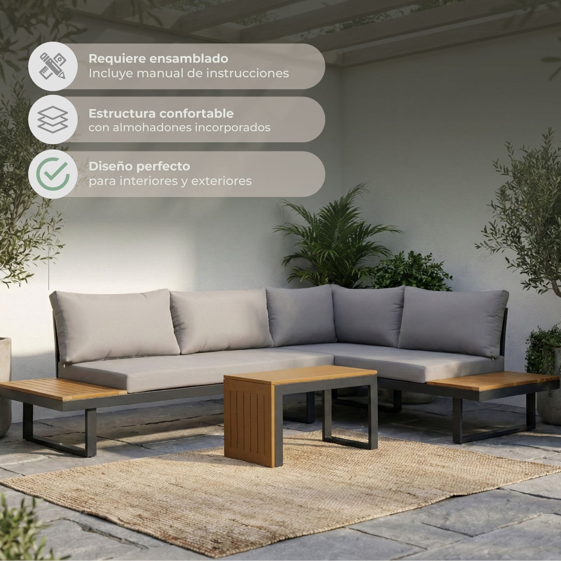 Set de exterior, incluye sillón en L y una mesa ratona a juego