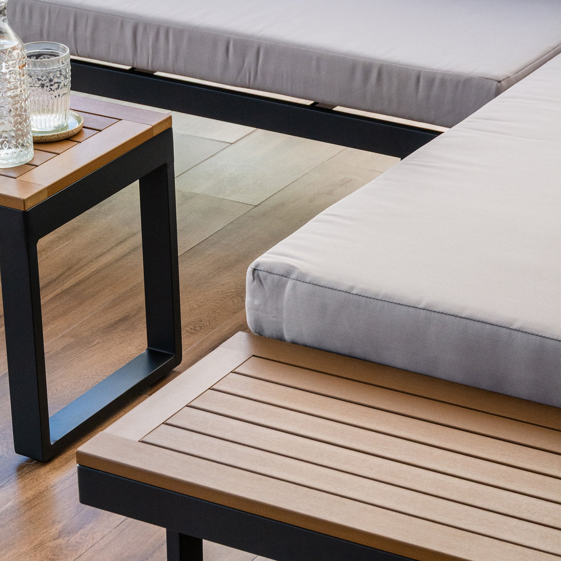 Transformá tus espacios exteriores con el Set de Mesa y Sillón en L para 4 Personas Saigón. Este set incluye dos módulos que podes combinar para crear un sillón esquinero, perfecto para lograr un espacio de reuniones moderno y acogedor.