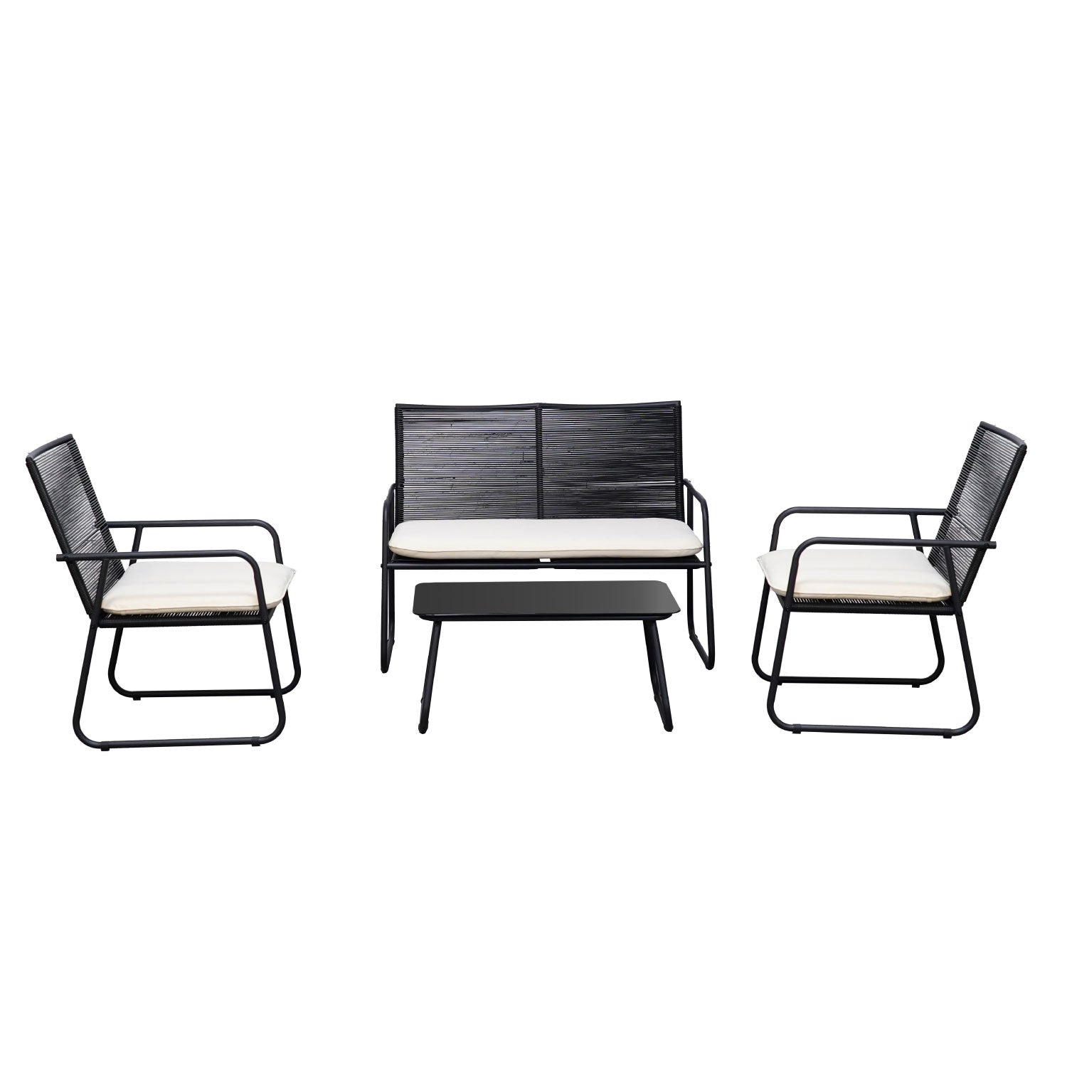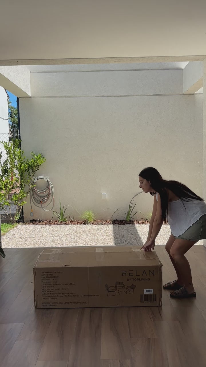 Set de exterior para 4 personas, incluye una mesa ratona, dos sillas y un sillón de 2 cuerpos