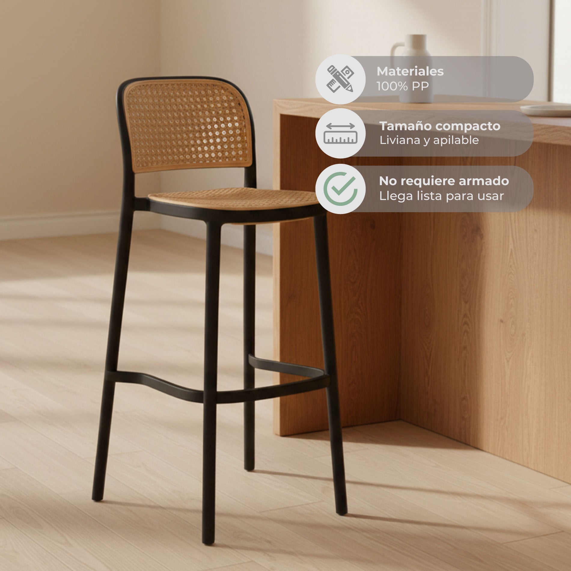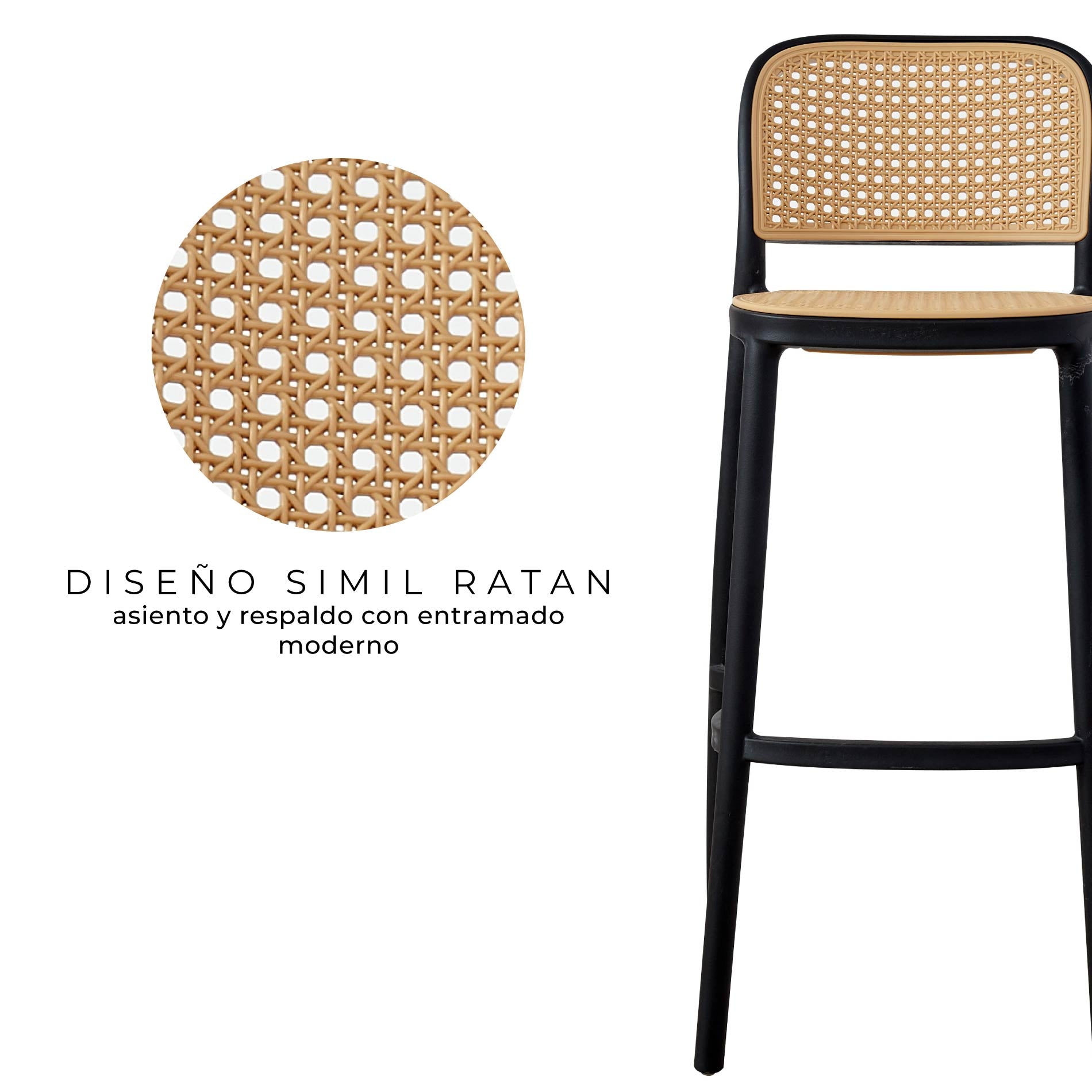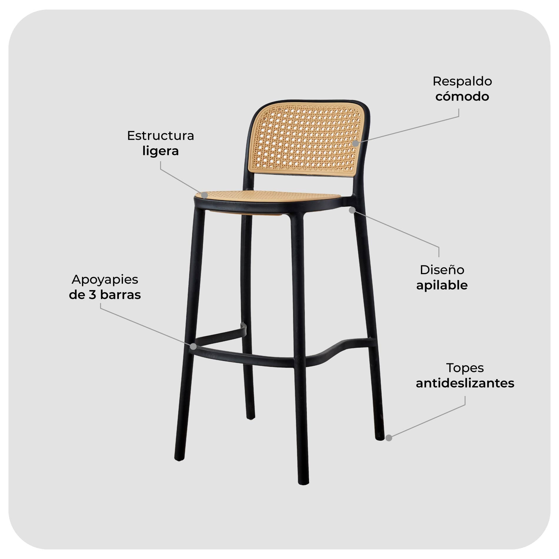 La Banqueta Alta Batanga by Top Living es una opción genial para colocar en islas de cocina, barras, bares, restaurantes o cafeterías. Su diseño moderno cuenta con detalles simil rattan, lo que la hace perfecta para darle un toque cálido a tu hogar. Está elaborada con materiales resistentes que permiten que sea usada tanto en interiores como en exteriores, adaptándose fácilmente a cualquier tipo de estilo de decoración.