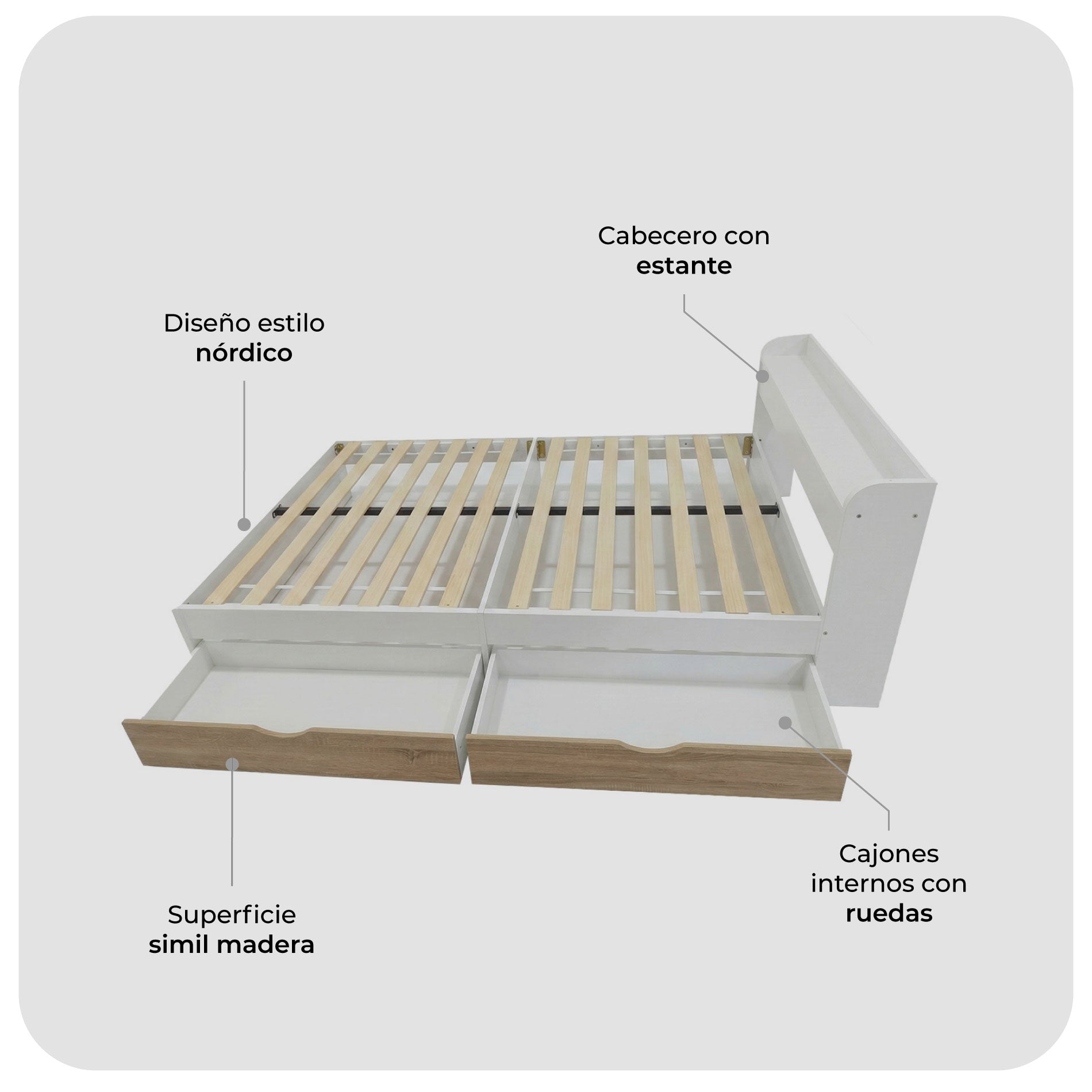 Cama de 2 Plazas Nórdica Con Cajones