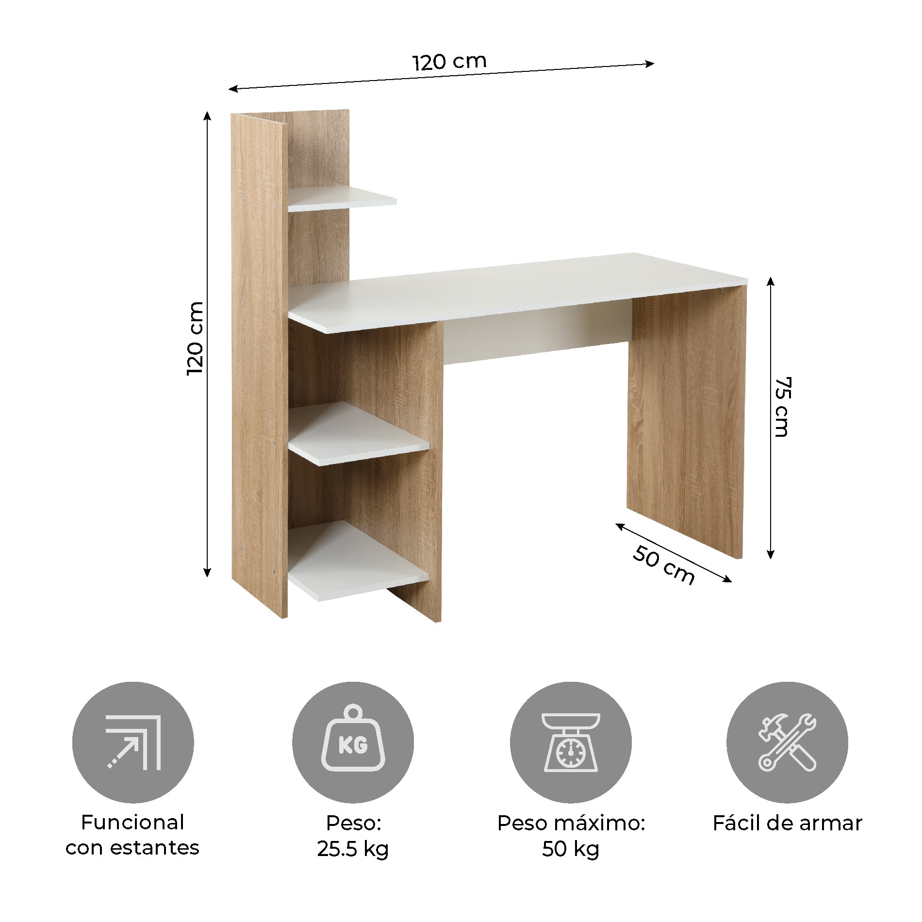 - Altura: 120 cm (total), 75 cm (escritorio)