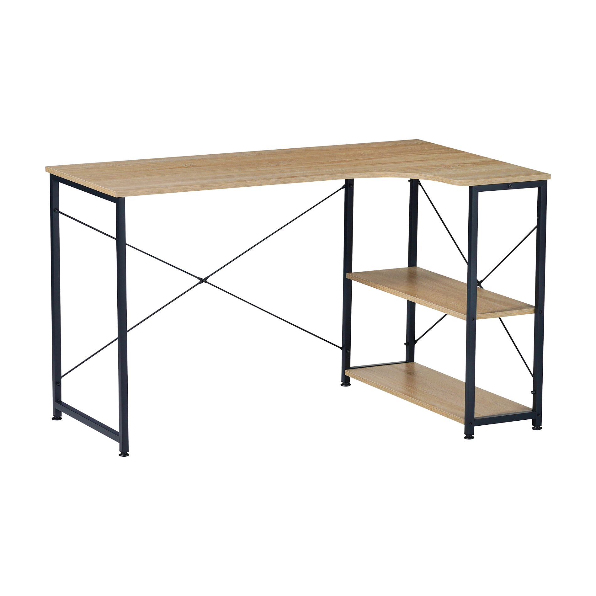 El Escritorio Desk 12 by Top Living de estilo industrial cuenta con una estructura de metal, con líneas limpias y tapas simil madera. Su estructura en forma de escuadra y sus estantes inferiores ofrecen gran espacio de trabajo y almacenamiento para tus libros, documentos, accesorios de oficina, objetos decorativos y lo que necesites tener al alcance de la mano mientras trabajas o estudias.