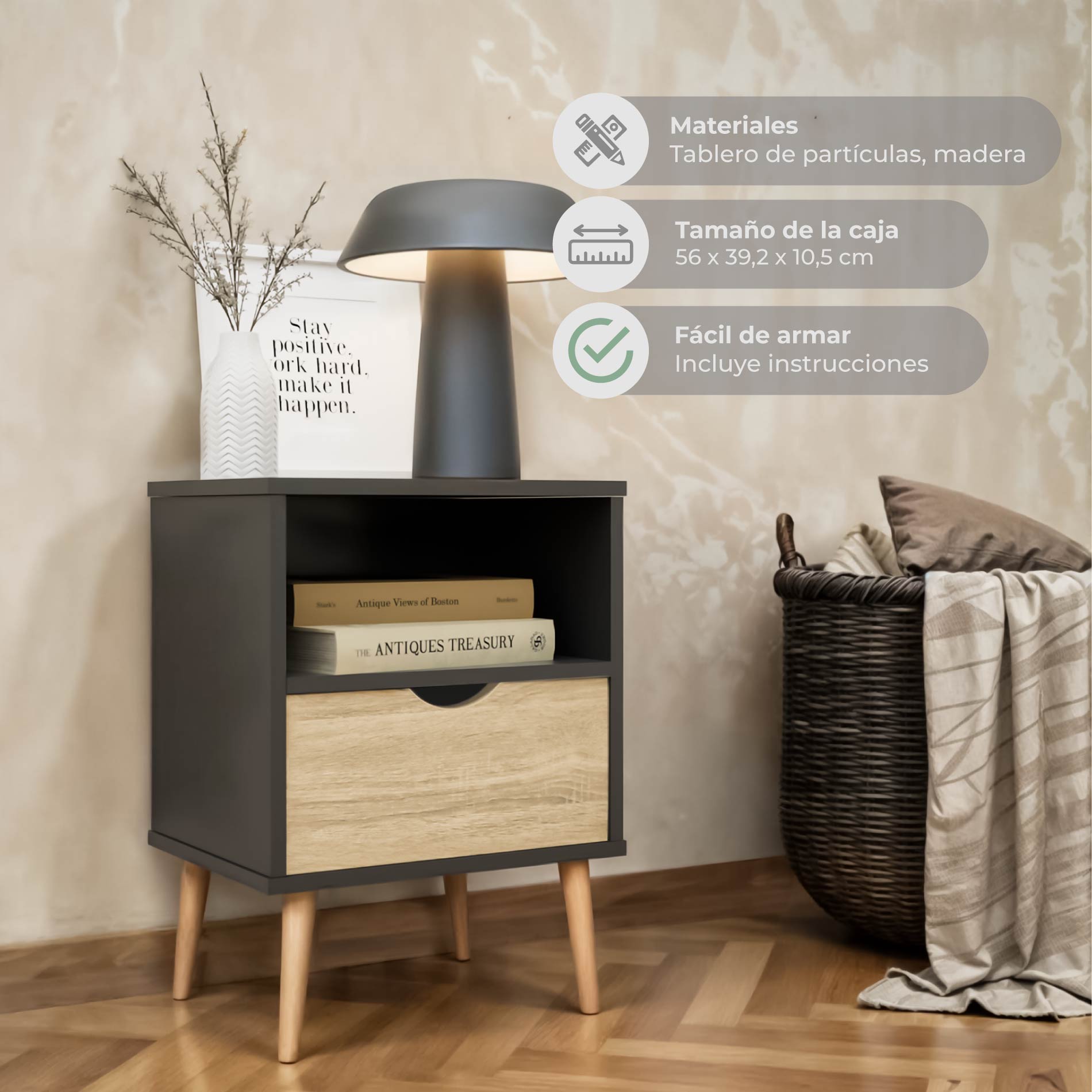 Dale un toque moderno a tu dormitorio con la Mesa de Luz Tromso Black by Relan. Su diseño nórdico es muy versátil, podes utilizarla como mesa de noche en tu habitación o como mesa auxiliar en tu living. Cuenta con un práctico cajón y un amplio espacio de guardado, lo que la hace perfecta para mantener todo organizado sin perder el estilo.