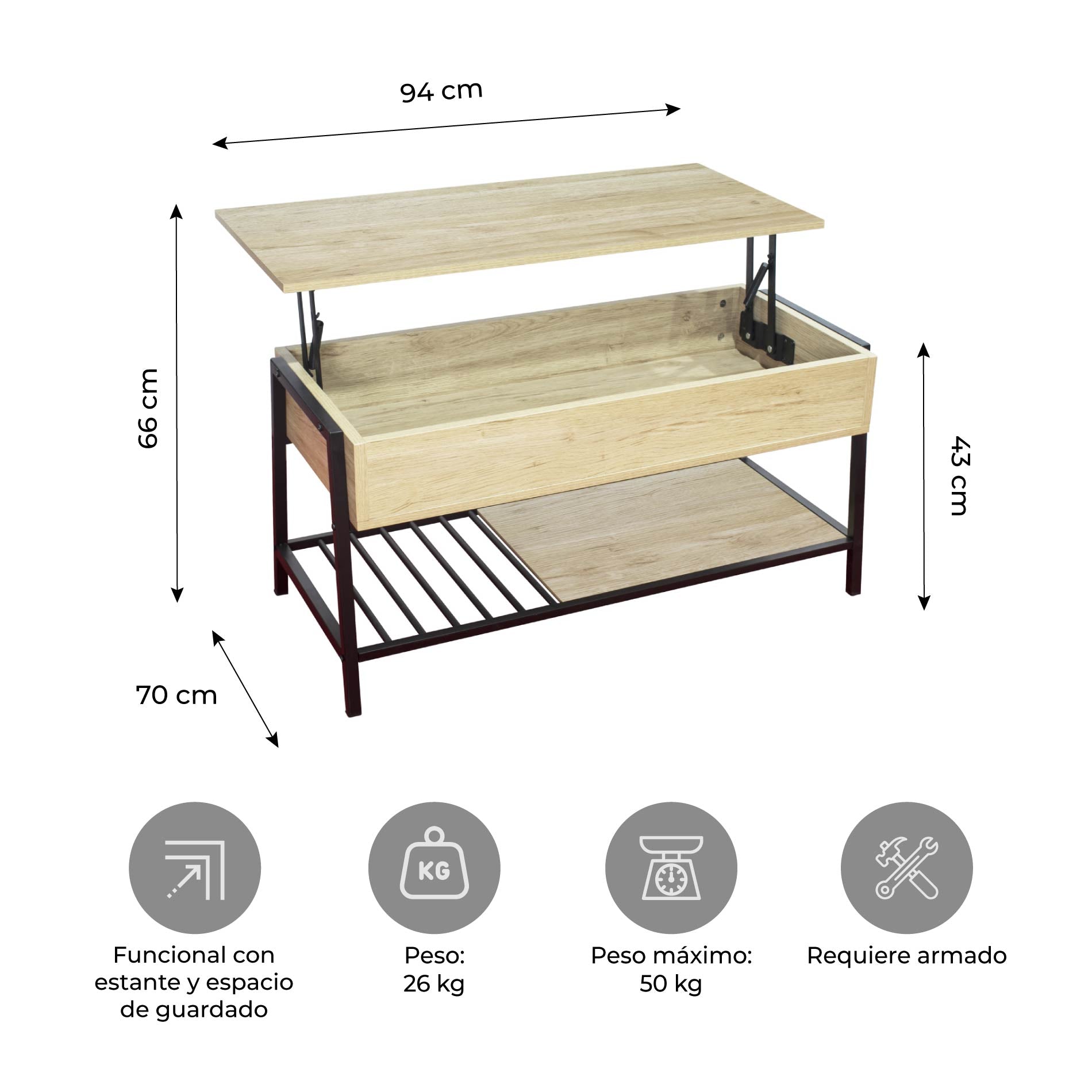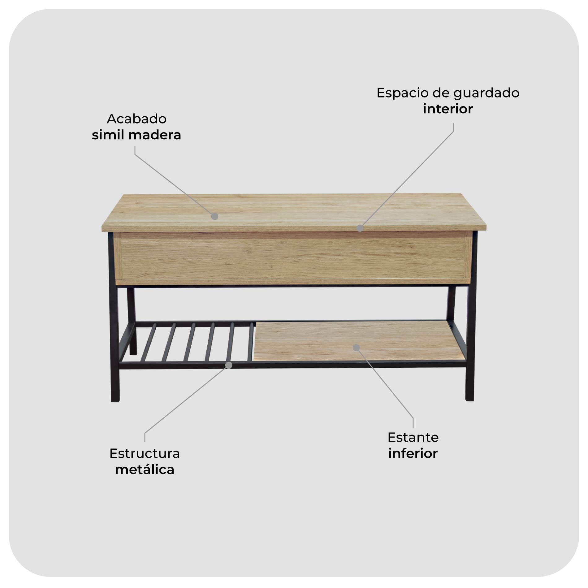 - Espacio de guardado interno y estante inferior, ideal para ordenar y decorar tu living