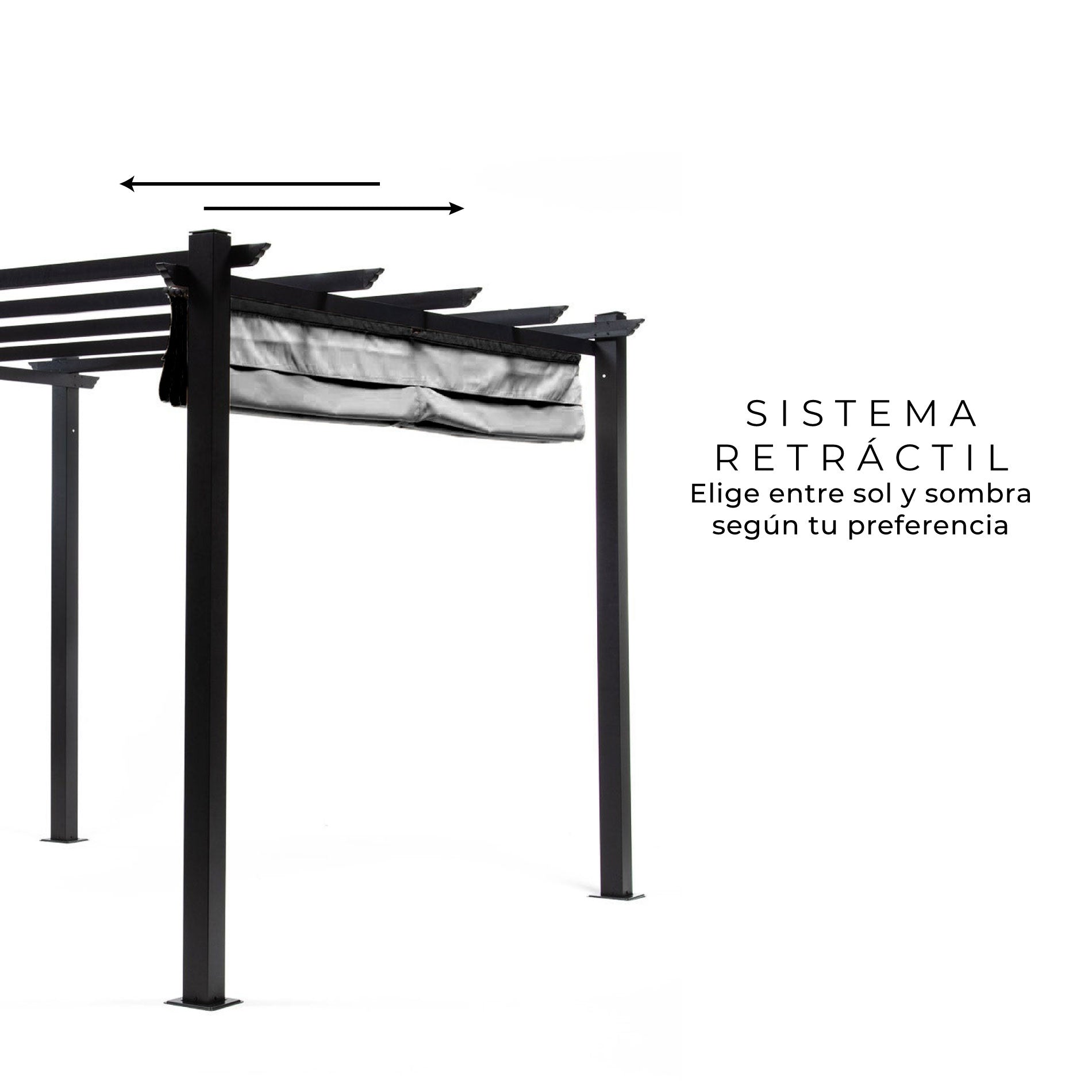 La Pérgola Grey Shelter es la estructura que necesitas para convertir tu jardín o terraza en un refugio soñado. Este gazebo cuenta con un toldo retráctil que te permitirá tener sombra o disfrutar del sol cuando lo desees, en un marco clásico y moderno. Ideal para jardines y terrazas, es muy fácil de ensamblar e instalar. El toldo te permitirá disfrutar del aire libre aún con una lluvia ligera.