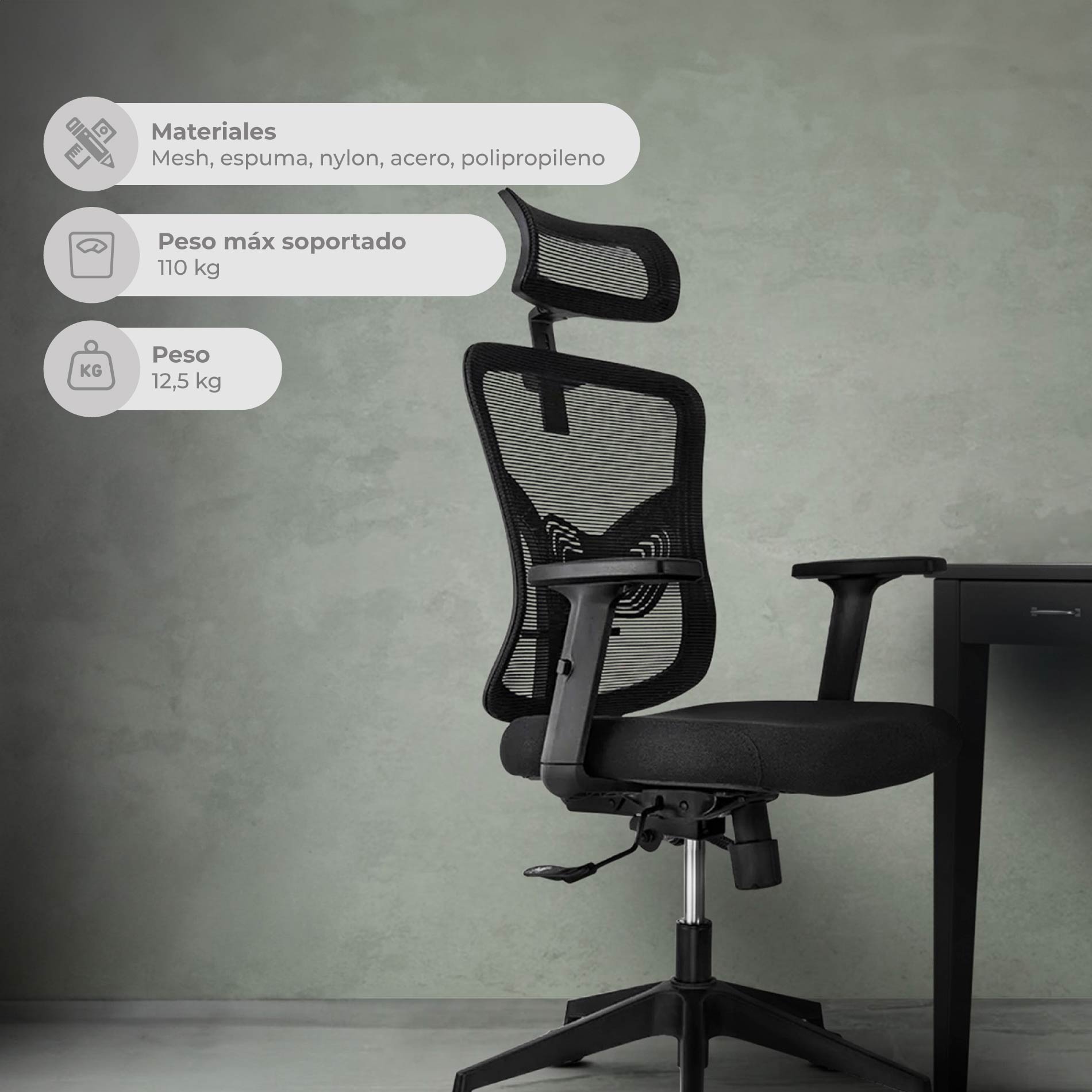 La Silla de Escritorio Ankara Black es una excelente opción para tu espacio de trabajo u oficina. Cuenta con altura ajustable, apoyo lumbar, apoyacabezas, brazos regulables y mecanismo para graduar la inclinación del respaldo. Esta silla de oficina está diseñada para brindarte comodidad durante largas jornadas gracias a su diseño ergonómico.