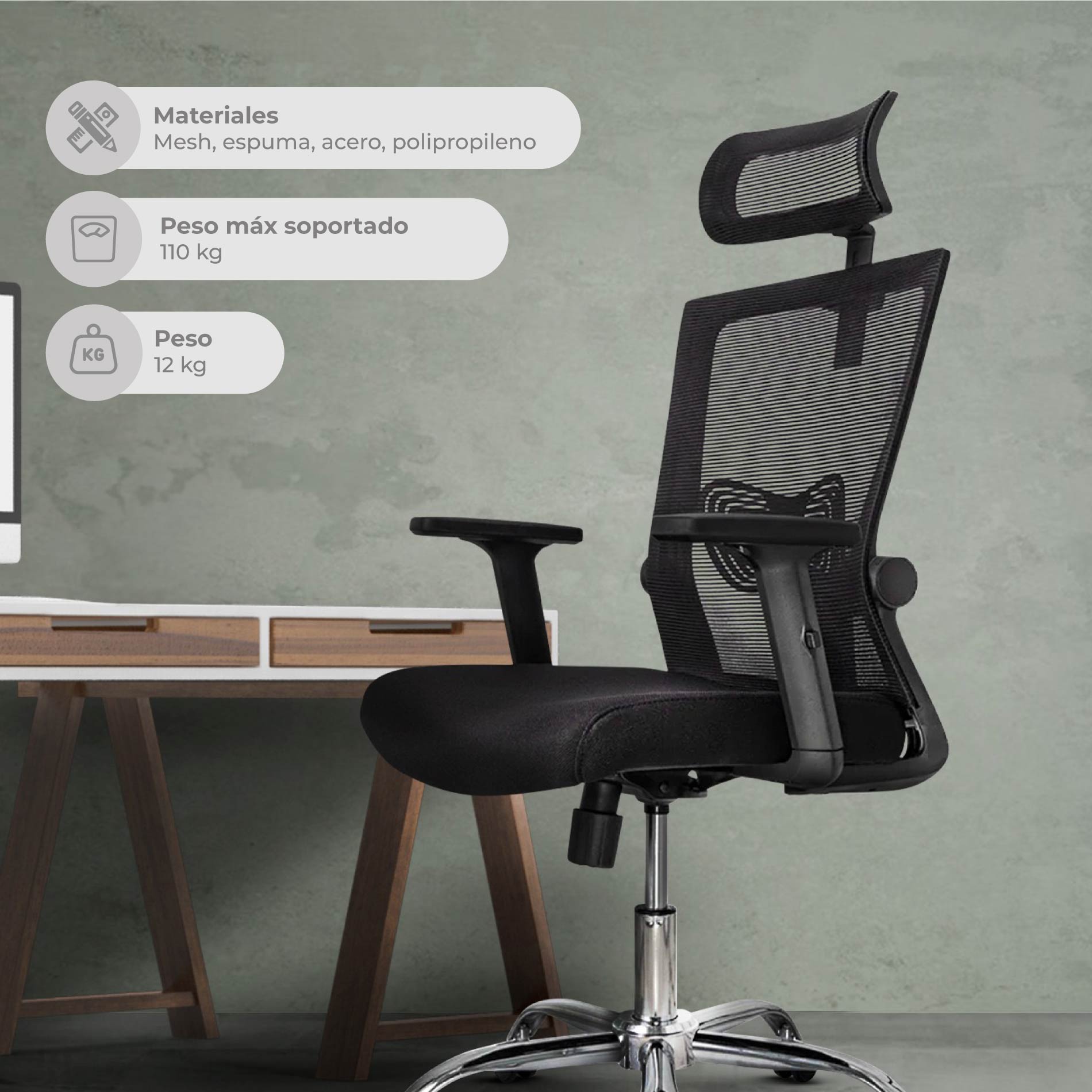 - Silla ergonómica con apoyo lumbar ajustable en altura