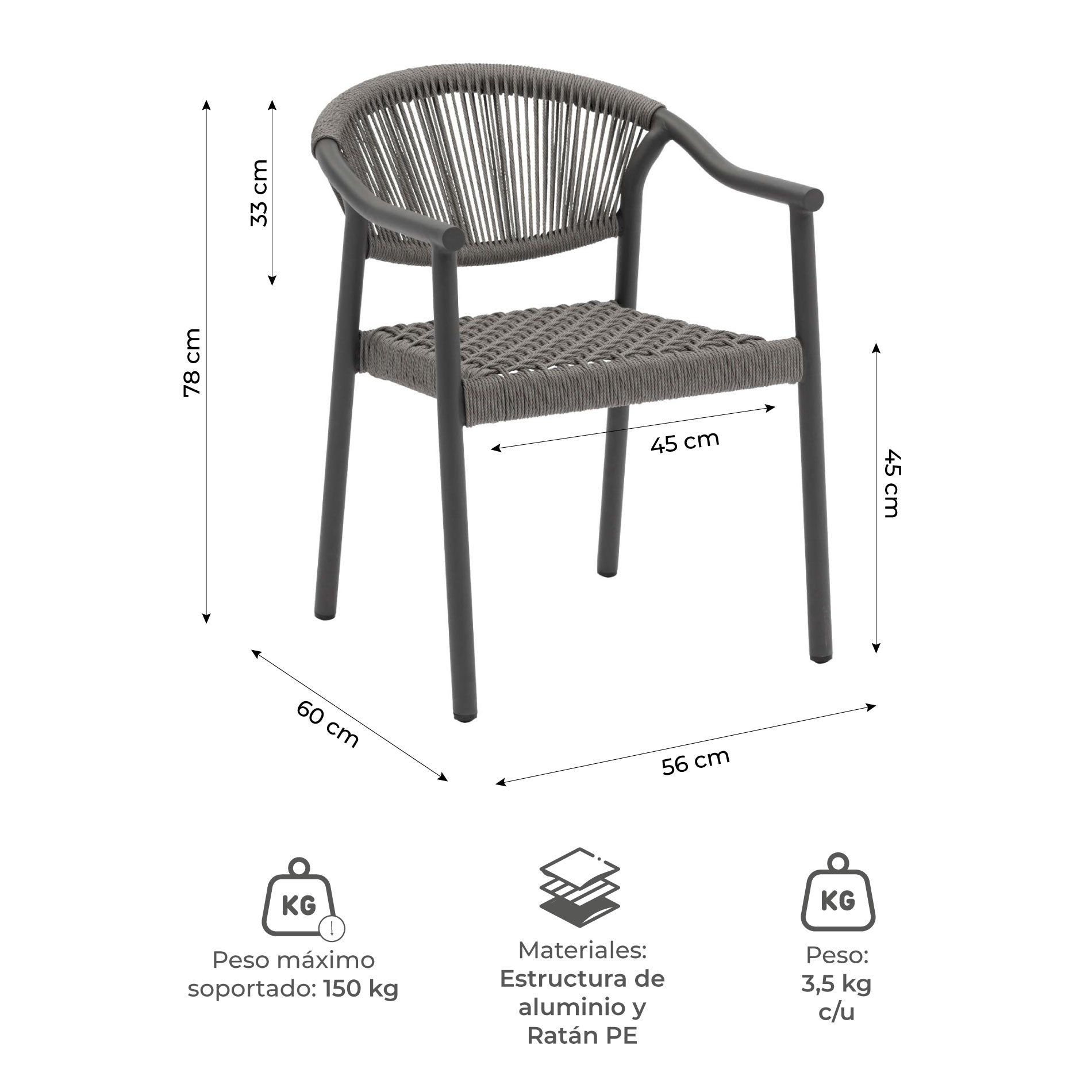 - Medidas del asiento: 45 x 44 cm